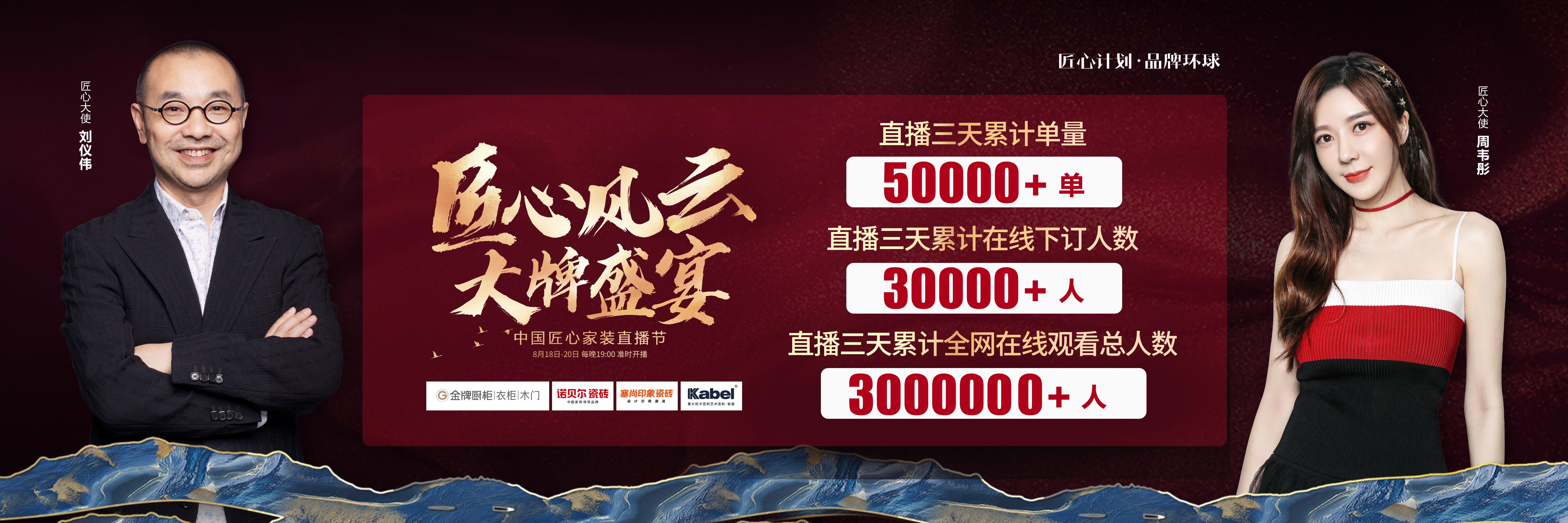 由181801威尼斯厨柜、诺贝尔瓷砖、塞尚印象瓷砖、卡百利艺术涂料联合缔造,创赢科技系统支持全案营销执行的“匠心风云 大牌盛宴”中国匠心家装直播节于8月20日圆满落...